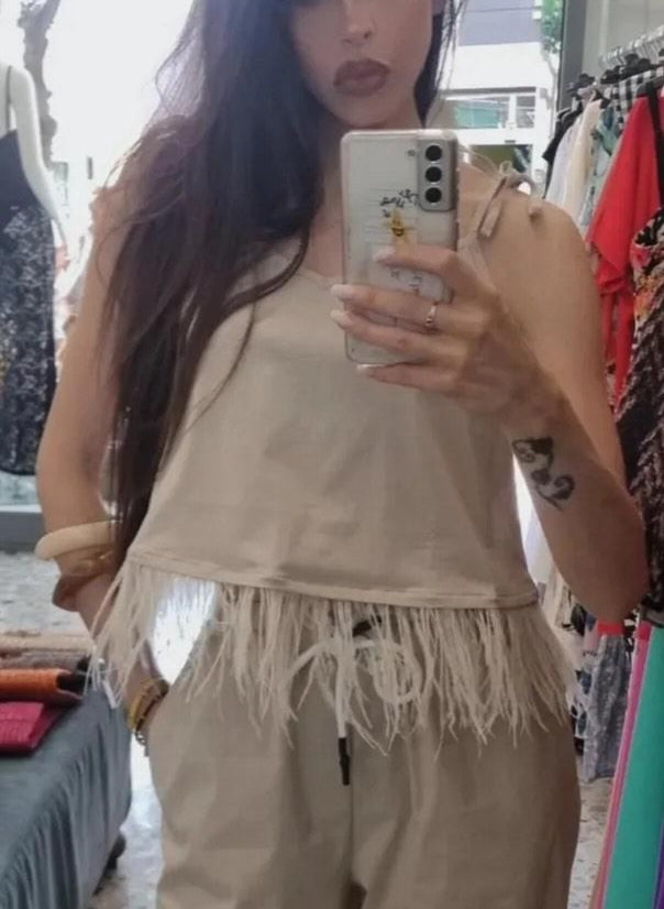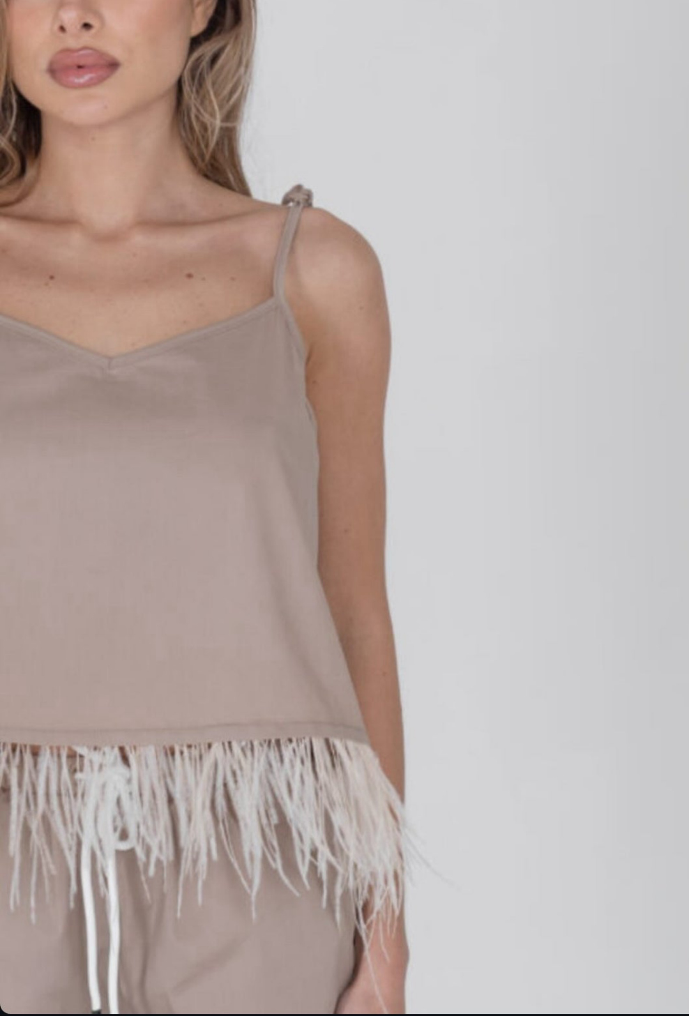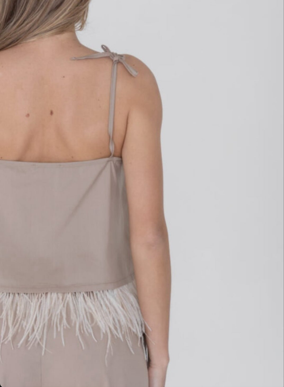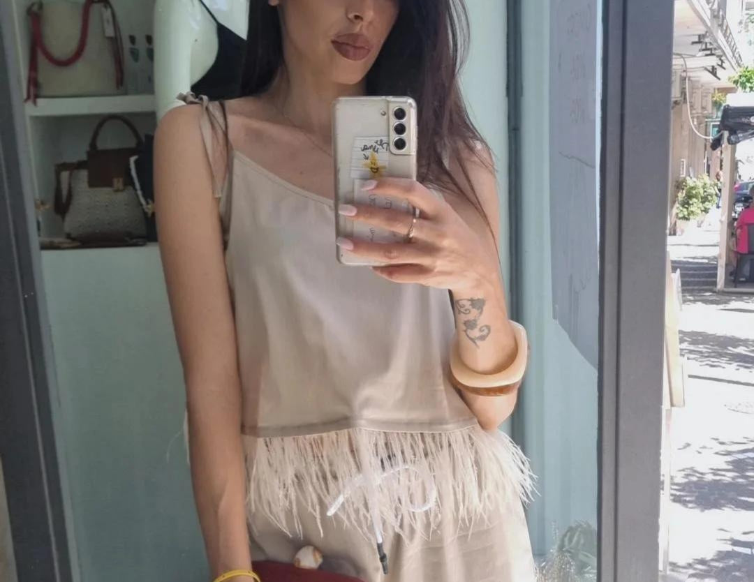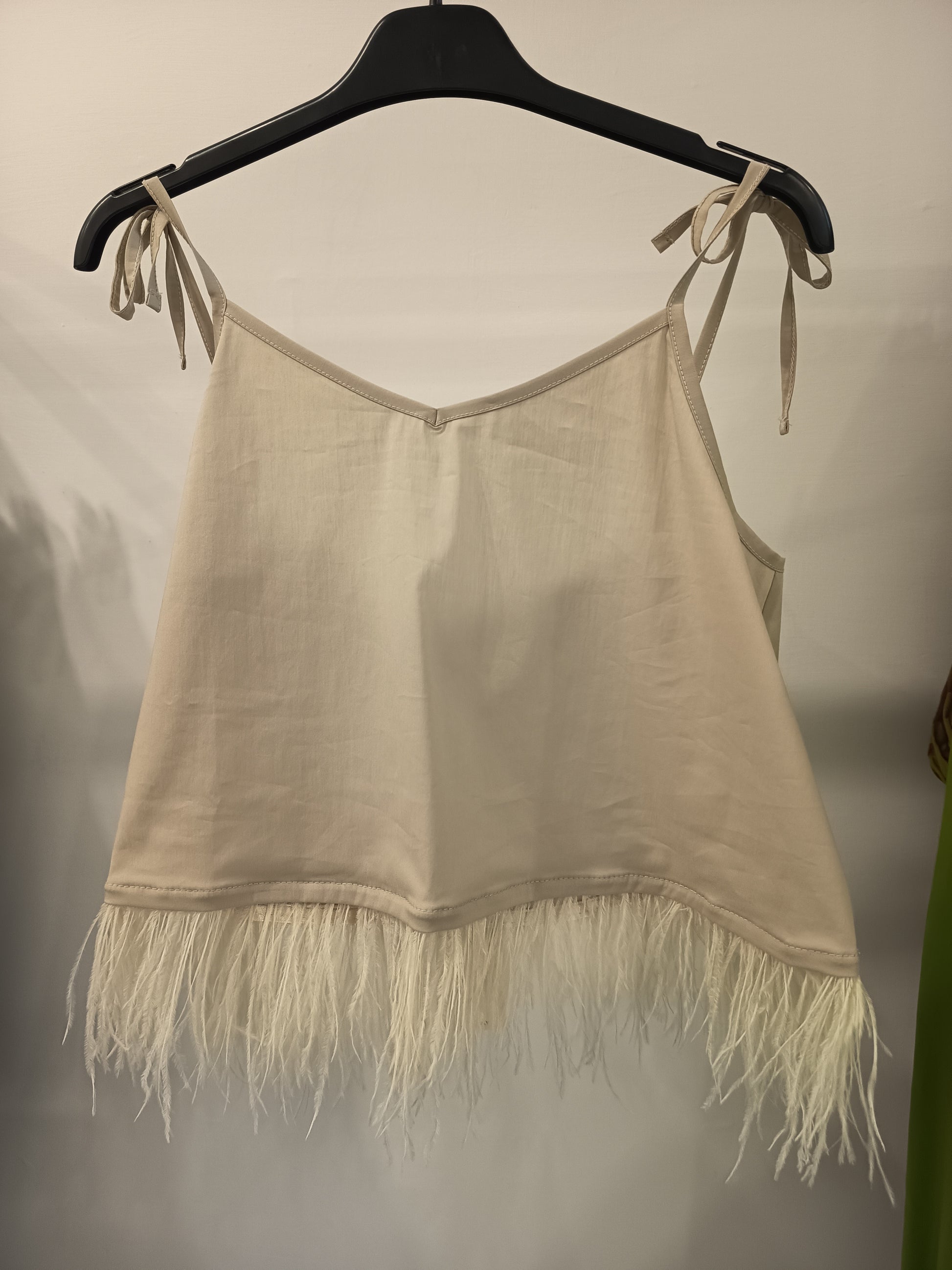 Top con spalline regolabili e piume
